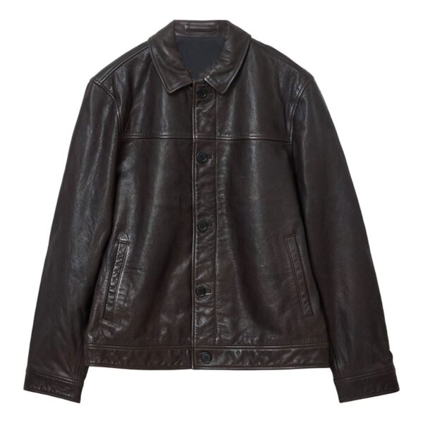Crafted from 100% genuine cow leather, the Neu Hide Nero Leather Jacket showcases effortless sophistication through its point collar, dropped shoulders, and minimal detailing. Featuring a front button closure, welt pockets, and a straight hem, it highlights the natural leather grain for a refined, understated finish.