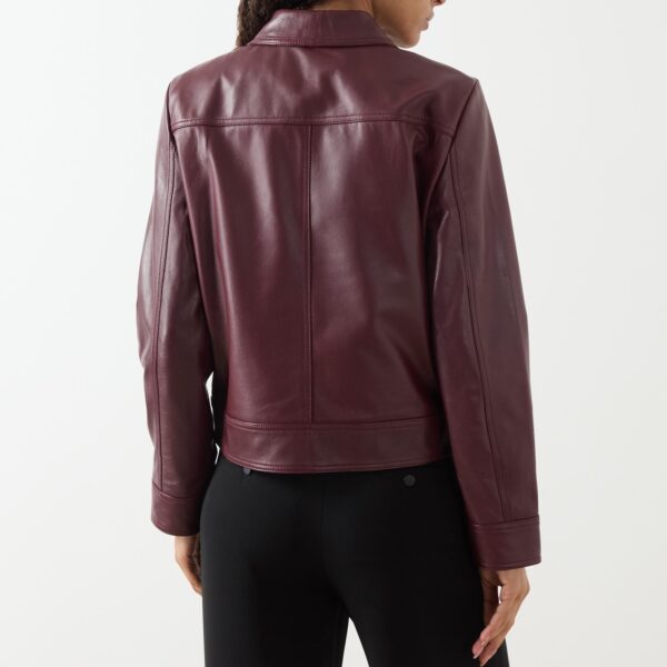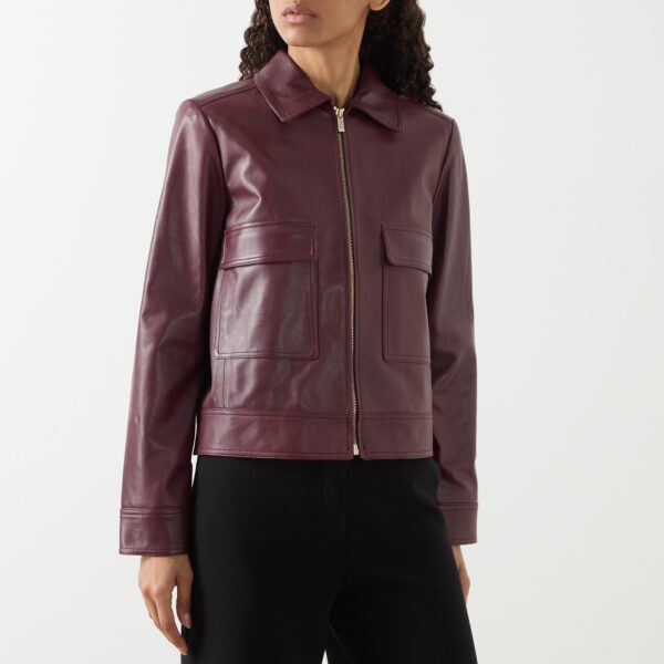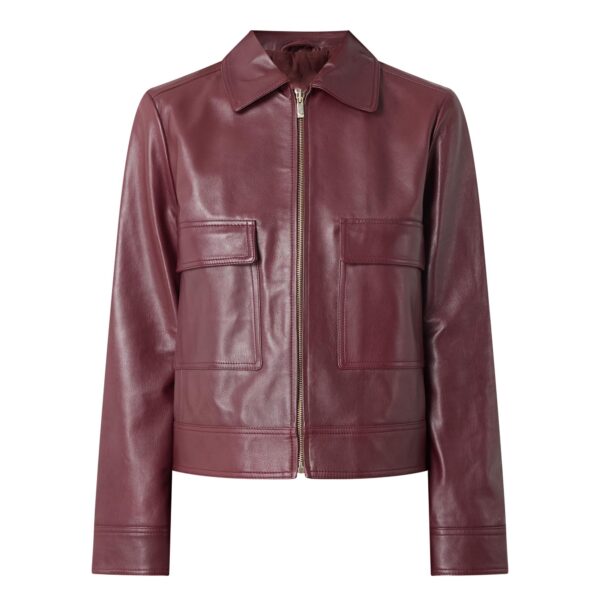The Neu Hide Nyx Leather Jacket — handcrafted from 100% premium sheep leather in bold red. Designed with a pointed collar, zip-through front, and flap pockets for a sleek, confident look that defines modern luxury.